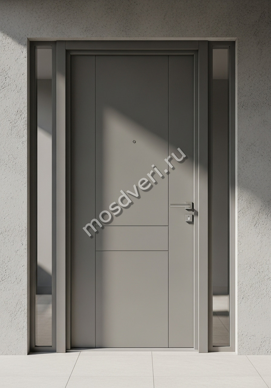 Дизайнерская входная дверь в дом светло-серая — сочетает в себе стильный внешний вид и высокую надёжность.
