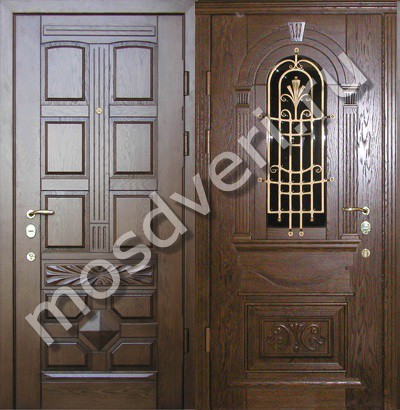 Элитная железная дверь для загородного дома с зеркалом и ковкой — совмещает стильный внешний вид и превосходные защитные характеристики.